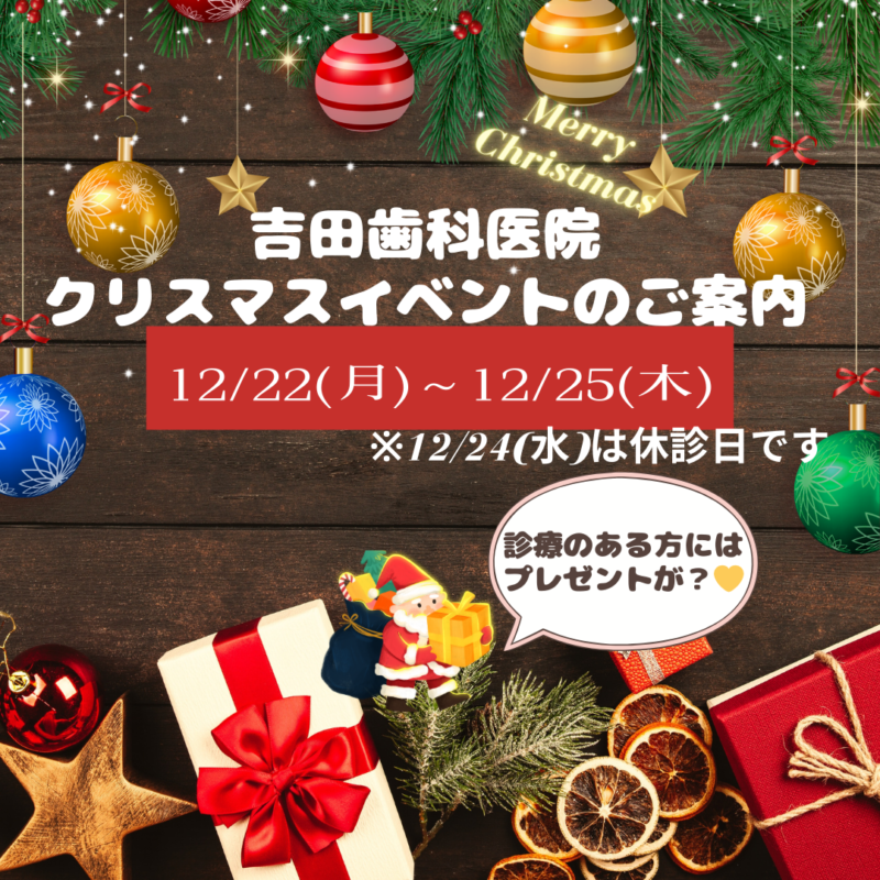 毎年恒例クリスマスイベントを開催いたします🎁●期間:12/22(月)〜12/25(木)の3日間 ※12/24は休診日です
